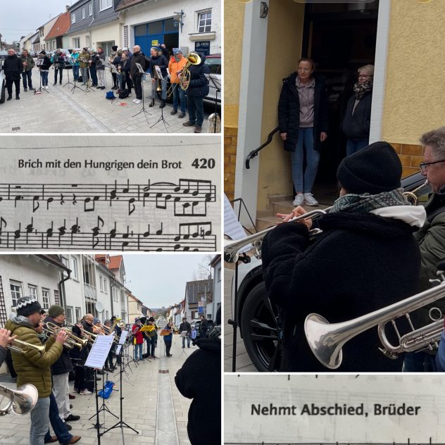 In diesem Gottesdienst hatte der Posaunenchor nochmals Teile der „Jubiläumssuite“ von Matthias Bucher zu Gehör gebracht, die eigens für das 100-jährige Bestehen des Walldorfer Posaunenchors komponiert wurde. Mit diesen strahlenden Klängen, unterstützt durch Schlagzeug, gehen unsere Jubiläumsaktivitäten zu Ende.